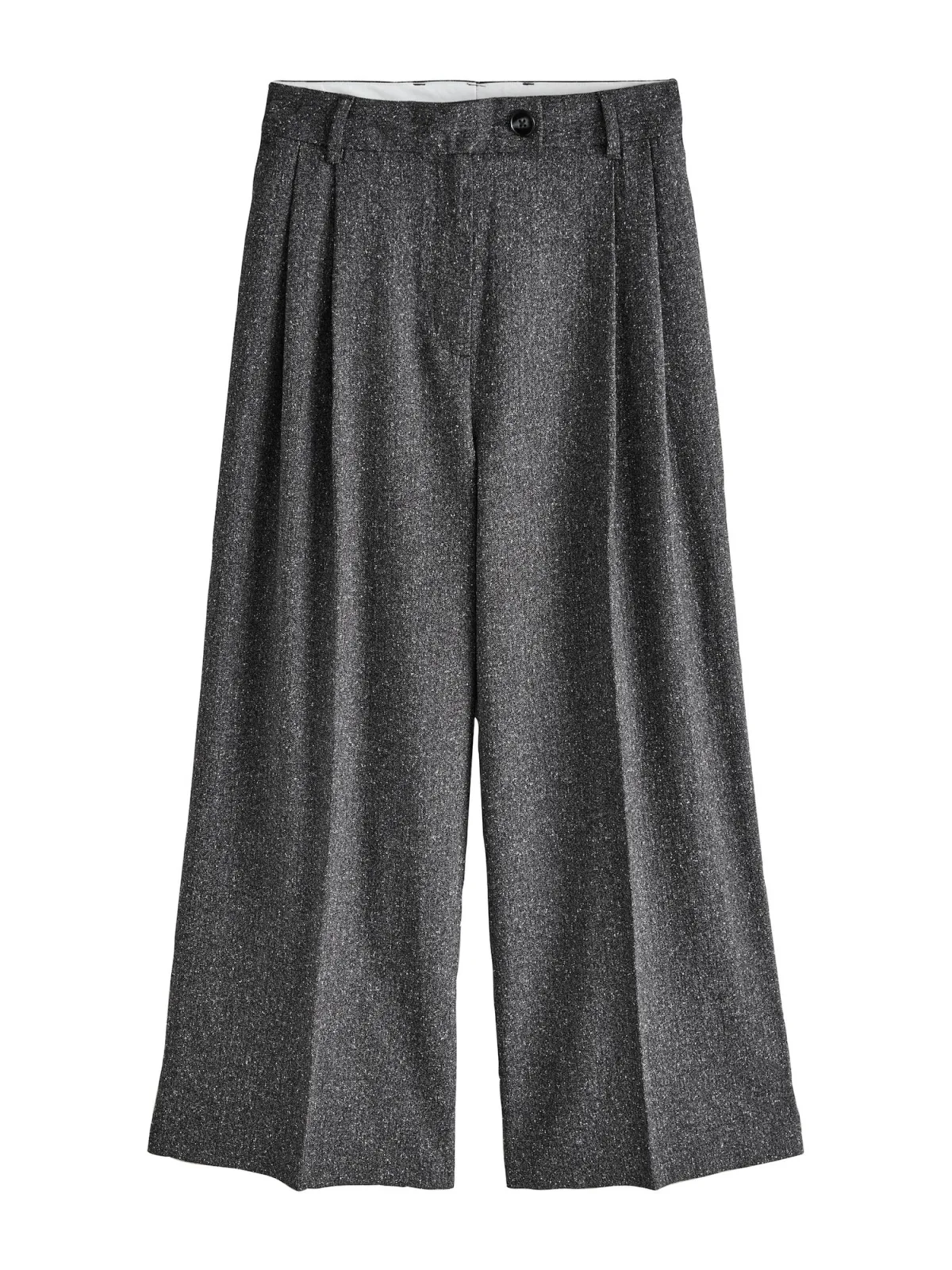 Design: Gevoerde zoom/rand, Zakken aan de zijkant; Type sluiting: Ritssluiting; Materiaal: Gerecycled materiaal; Motief: Mélange; Details: Plooien; Extra's: Riemlussen; Lengte: 7/8 lengte; Pasvorm: Wide leg; Taillehoogte: High waist