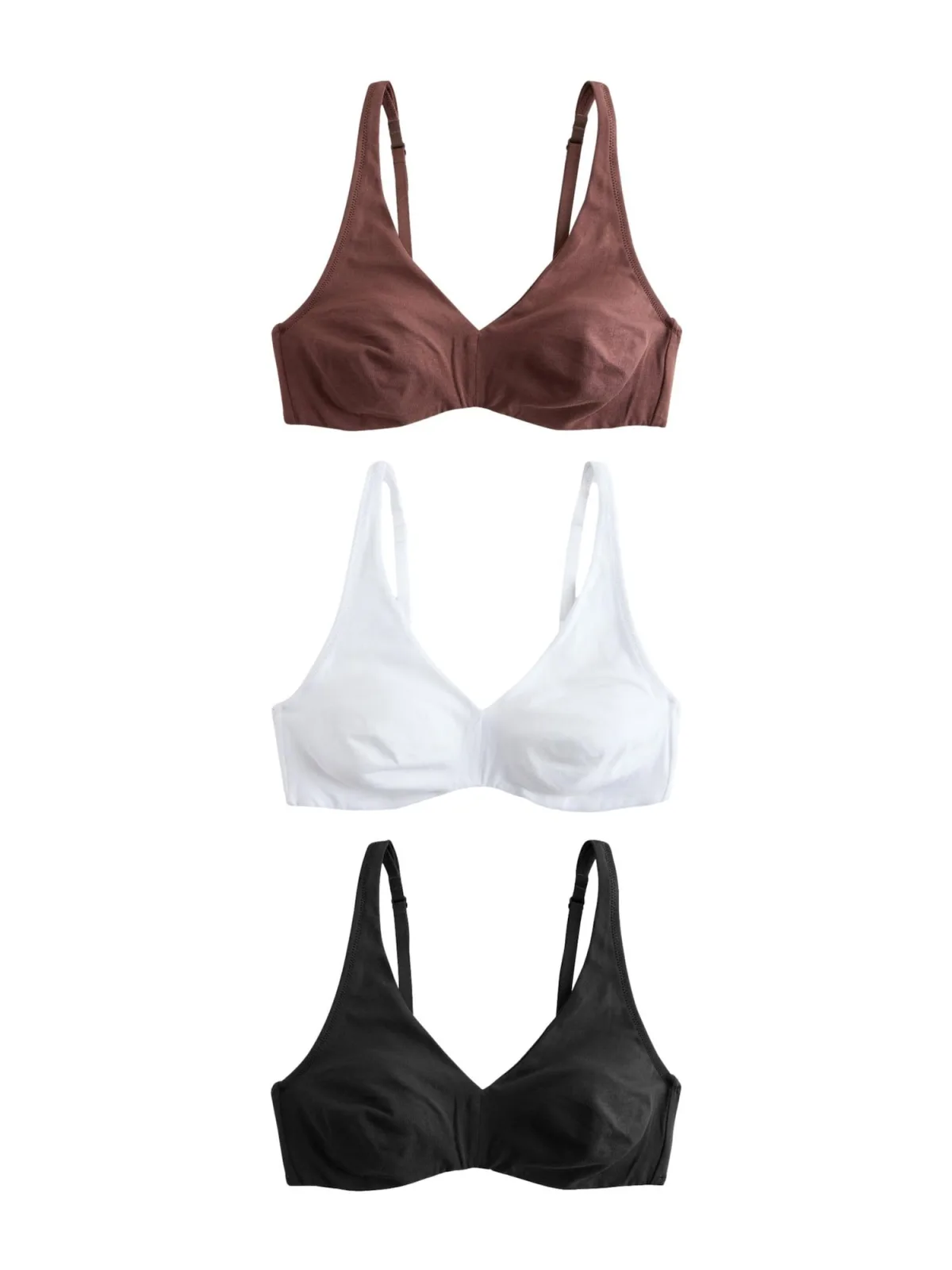 Cup soorten: Soft cup bh; Soort bandjes: Normale bandjes; Bh/bikini type: Triangel; Beugel: Zonder beugel; Design: Gevoerde zoom/rand; Type sluiting: Haakjes; Materiaal: Jersey; Motief: Effen; Extra's: Voelt zacht aan; Aantal: 3 Pack