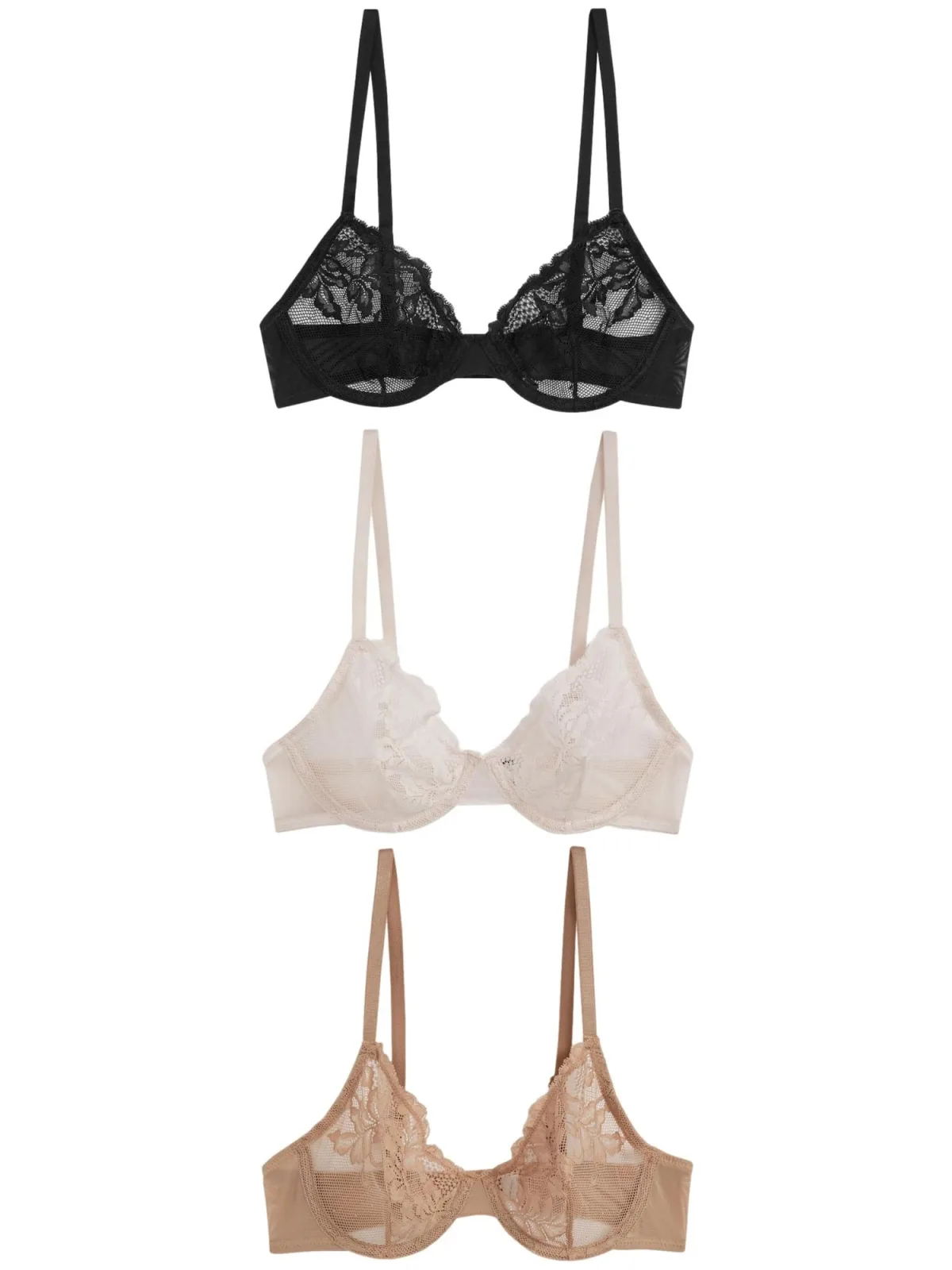 Cup soorten: Soft cup bh; Soort bandjes: Normale bandjes; Bh/bikini type: T-shirt; Beugel: Met beugel; Design: Elastische taille/zoom; Type sluiting: Haakjes; Motief: Effen; Details: Kant; Extra's: Licht transparant; Aantal: 3 Pack