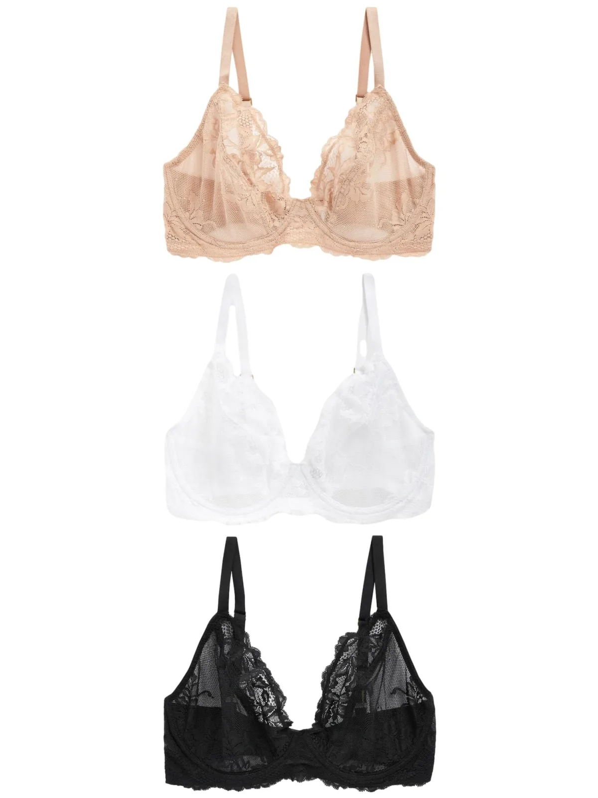 Cup soorten: Soft cup bh; Soort bandjes: Normale bandjes; Beugel: Zonder beugel; Type sluiting: Haakjes; Motief: Effen; Details: Kant; Extra's: Licht transparant, Verstelbare bandjes; Aantal: 3 Pack