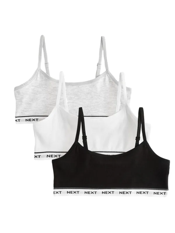 Cup soorten: Soft cup bh; Soort bandjes: Normale bandjes; Bh/bikini type: Bustier; Beugel: Zonder beugel; Materiaal: Jersey; Motief: Logoprint; Extra's: Verstelbare bandjes, Label borduurwerk, Op staal naden, Voelt zacht aan; Aantal: 3 Pack