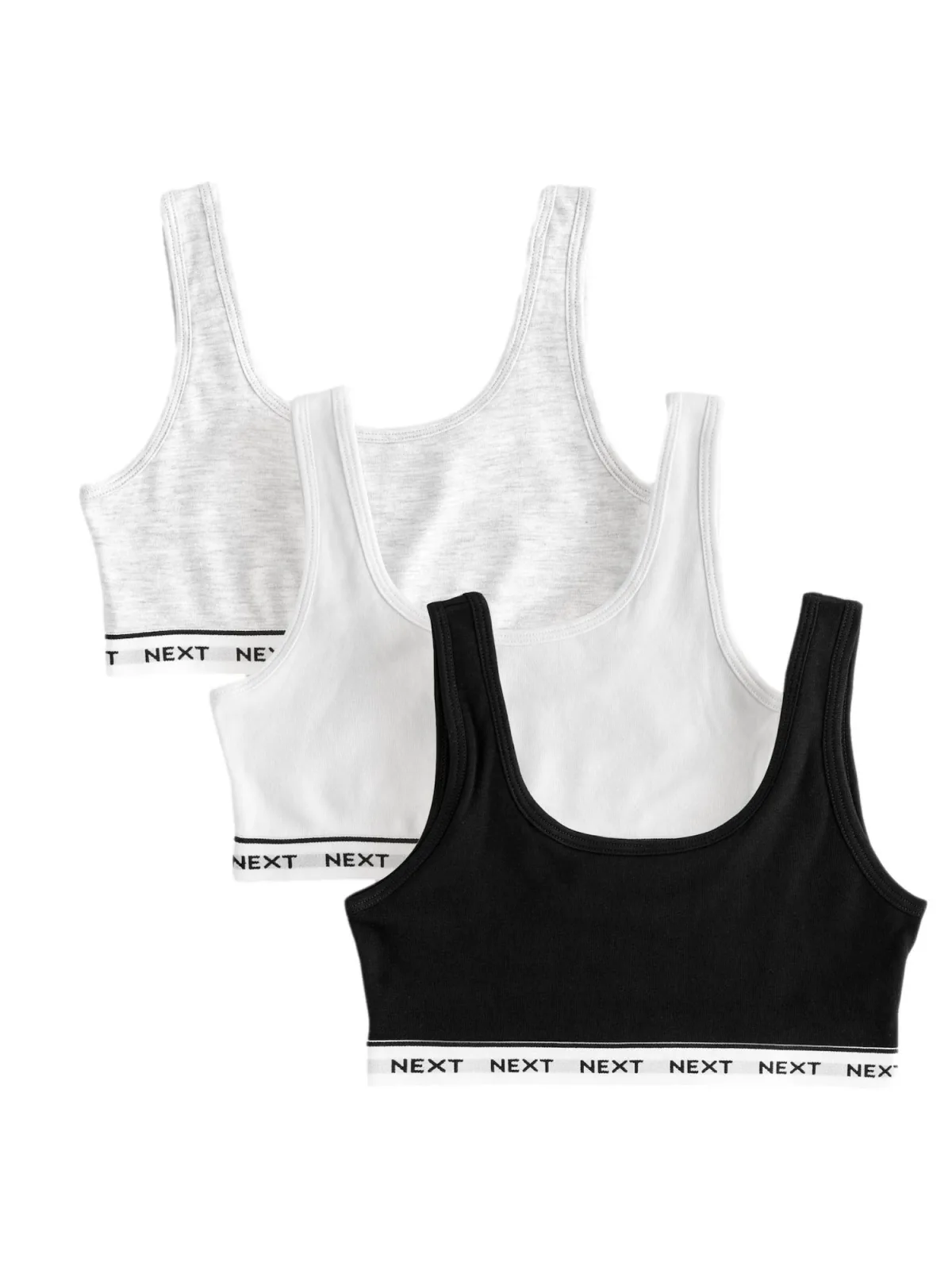 Cup soorten: Soft cup bh; Soort bandjes: Normale bandjes; Bh/bikini type: Bustier; Beugel: Zonder beugel; Design: Elastische taille/zoom; Materiaal: Jersey; Halstype: Ronde hals; Motief: Logoprint; Soort bandjes: Normale bandjes; Extra's: Voelt zacht aan; Pasvorm: Aansluitende pasvorm; Aantal: 3 Pack; Armlengte: Mouwloos; Lengte: Korte pasvorm
