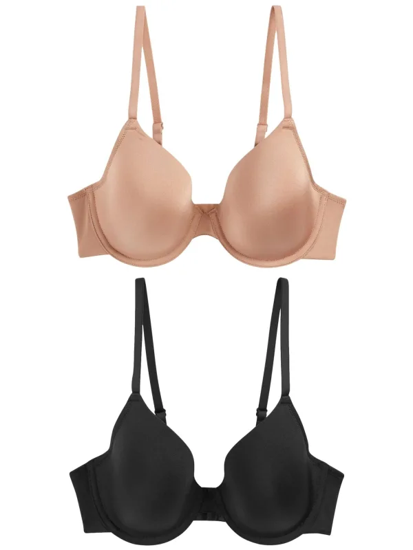 Cup soorten: Full cup bh; Soort bandjes: Normale bandjes; Bh/bikini type: T-shirt; Beugel: Met beugel; Type sluiting: Haakjes; Motief: Effen; Extra's: Lichte stof; Aantal: 2 Pack