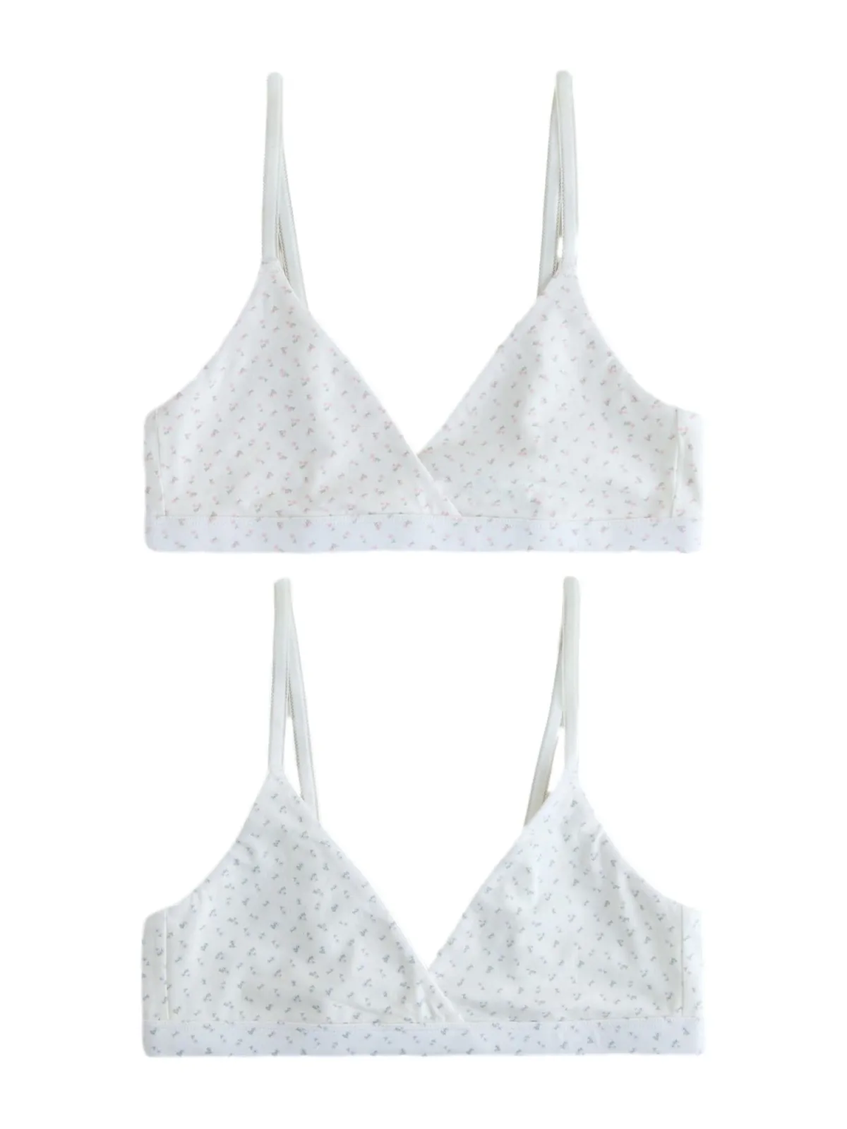 Cup soorten: Soft cup bh; Soort bandjes: Normale bandjes; Bh/bikini type: Triangel; Beugel: Zonder beugel; Design: Rechte zoom, Wikkel-look; Type sluiting: Haakjes; Materiaal: Jersey; Motief: Bloemenprint; Extra's: Verstelbare bandjes, All-over patroon; Aantal: 2 Pack