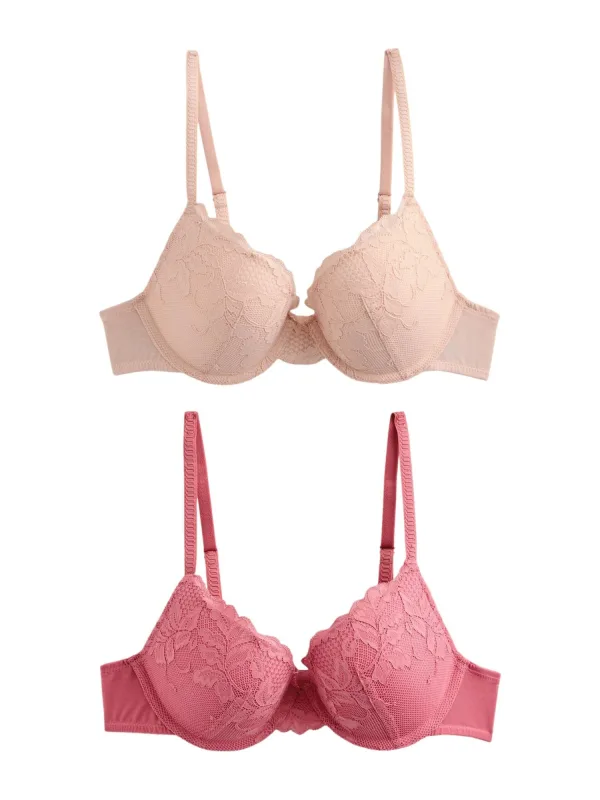 Cup soorten: Full cup bh; Soort bandjes: Normale bandjes; Bh/bikini type: Push-up; Beugel: Met beugel; Design: Ingebouwde shape cups; Type sluiting: Haakjes; Motief: Effen; Details: Kant; Extra's: Uitneembare cups; Aantal: 2 Pack