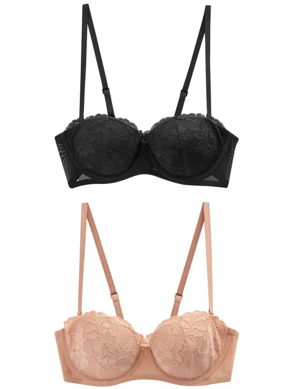 Cup soorten: Full cup bh; Soort bandjes: Multiway bandjes; Bh/bikini type: Balconette; Beugel: Met beugel; Motief: Effen; Details: Kant; Extra's: Verstelbare bandjes; Aantal: 2 Pack