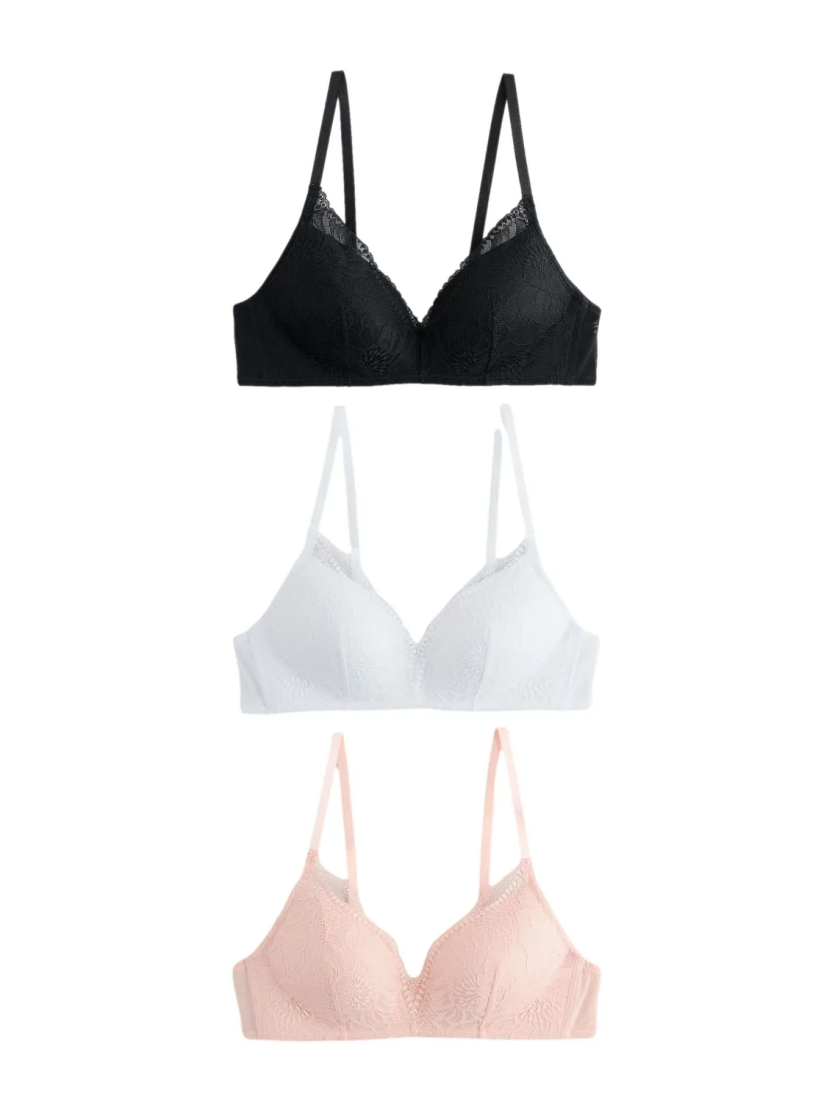 Cup soorten: Full cup bh; Soort bandjes: Normale bandjes; Bh/bikini type: T-shirt; Beugel: Zonder beugel; Design: Elastische taille/zoom; Type sluiting: Haakjes; Motief: Effen; Details: Kant; Extra's: Verstelbare bandjes, Met textuur; Aantal: 3 Pack