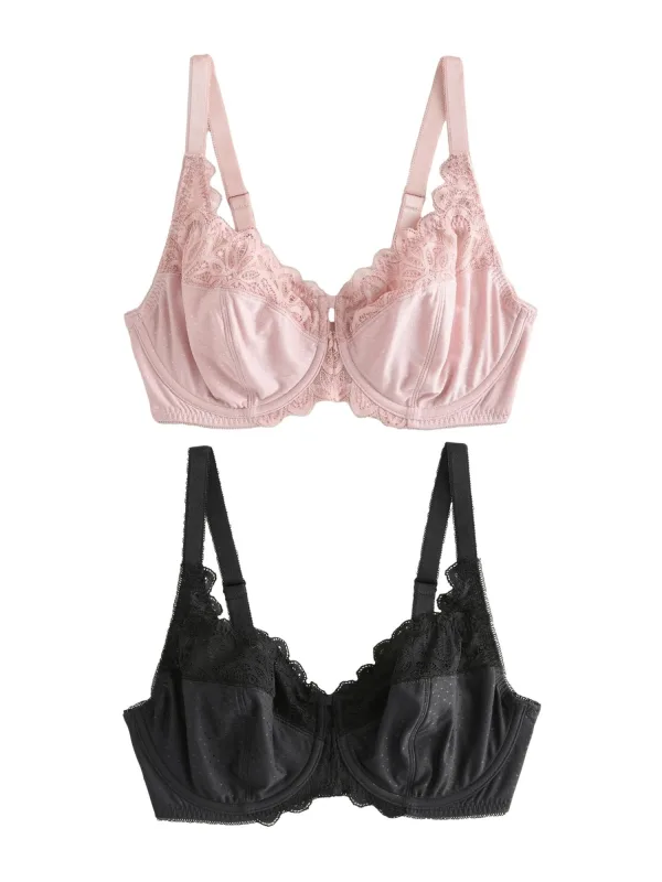 Cup soorten: Soft cup bh, Full cup bh; Soort bandjes: Normale bandjes; Bh/bikini type: T-shirt; Beugel: Met beugel; Design: Elastische taille/zoom; Type sluiting: Haakjes; Materiaal: Jersey; Motief: Gestippeld; Details: Kant; Extra's: Verstelbare bandjes; Aantal: 2 Pack