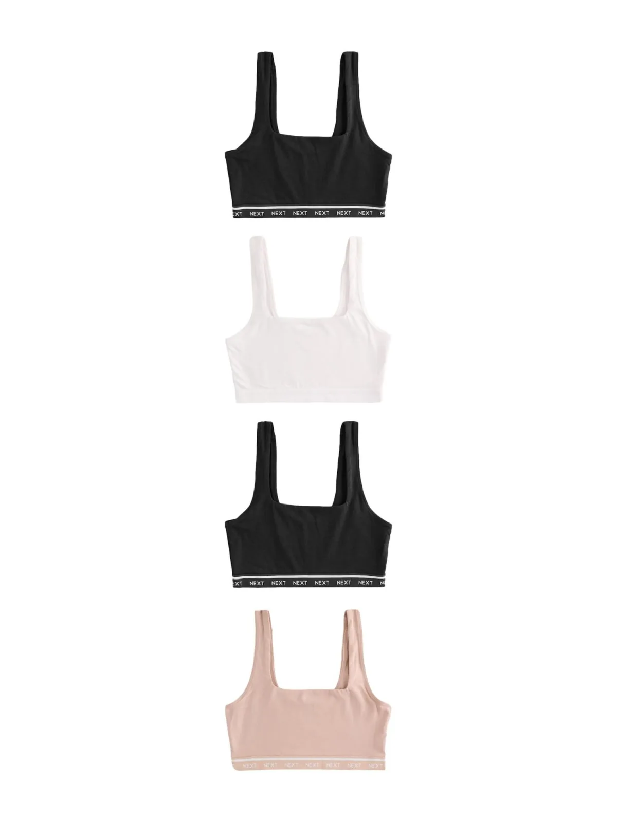 Cup soorten: Soft cup bh; Soort bandjes: Racerback; Bh/bikini type: Bustier; Beugel: Zonder beugel; Design: Elastische taille/zoom; Materiaal: Jersey; Motief: Logoprint; Extra's: Voelt zacht aan; Aantal: 4 Pack