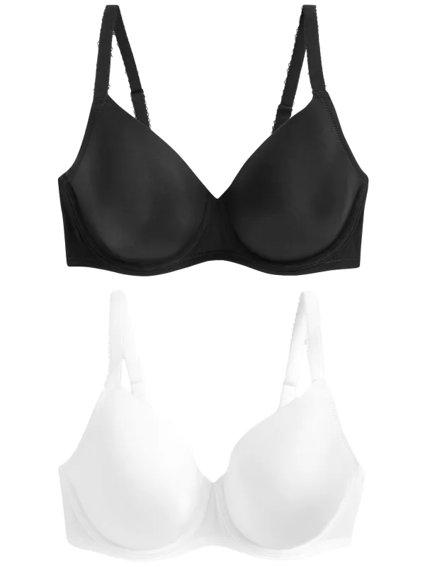 Cup soorten: Full cup bh; Soort bandjes: Normale bandjes; Bh/bikini type: Minimizer; Beugel: Zonder beugel; Type sluiting: Haakjes; Motief: Effen; Extra's: Fijne stof; Aantal: 2 Pack