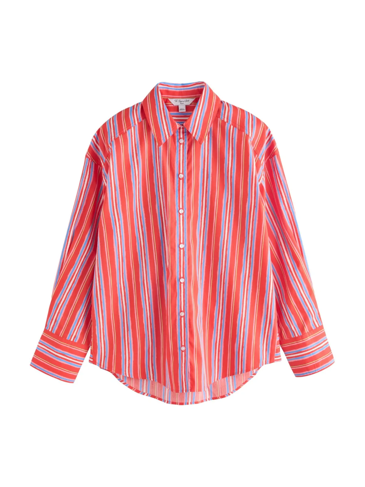 Blouse type: Klassieke blouse; Design: Placket; Type sluiting: Knoopsluiting; Materiaal: Katoen; Motief: Gestreept; Kraag: Kentkraag; Details: Borduursels; Extra's: All-over patroon, Oplichtende stof; Pasvorm: Wijde pasvorm; Armlengte: Lange mouw; Lengte: Normale lengte