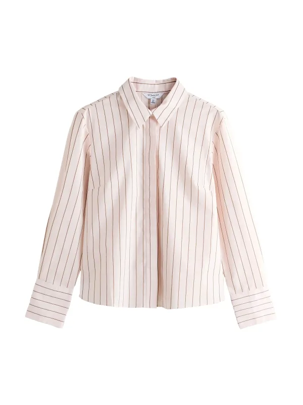 Blouse type: Klassieke blouse; Design: 2-knoops manchetten, Gevoerde zoom/rand, Verborgen knop placket; Type sluiting: Knoopsluiting; Materiaal: Gerecycled materiaal; Motief: Gestreept; Kraag: Kentkraag; Details: Plooien; Extra's: All-over patroon, Voelt zacht aan; Pasvorm: Normale pasvorm; Armlengte: Lange mouw; Lengte: Normale lengte