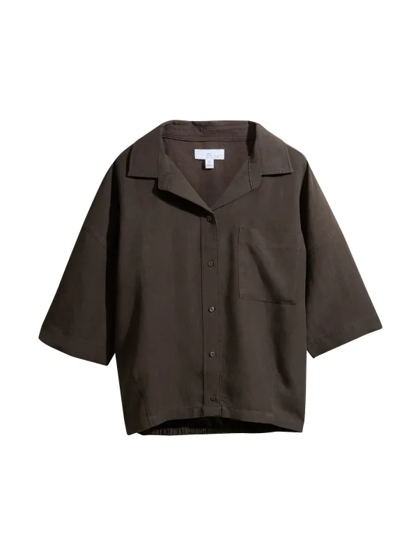 Blouse type: Klassieke blouse; Design: Placket, Overcut schouder, Borstzak, Elastische inzetstukken; Type sluiting: Knoopsluiting; Materiaal: Lyocell; Motief: Effen; Details: Volant; Extra's: Lichte stof; Pasvorm: Wijde pasvorm; Armlengte: Driekwart mouw; Lengte: Normale lengte