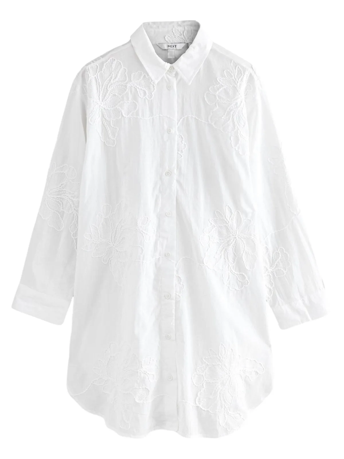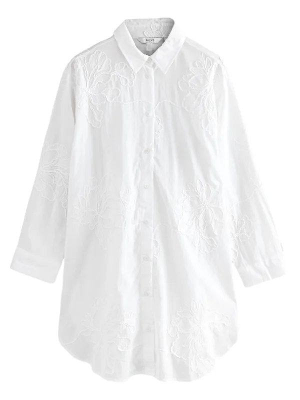 Blouse type: Klassieke blouse; Type sluiting: Knoopsluiting; Materiaal: Katoen; Motief: Bloemenprint; Kraag: Kentkraag; Details: Borduursels; Pasvorm: Losse pasvorm; Armlengte: Lange mouw; Lengte: Lange pasvorm