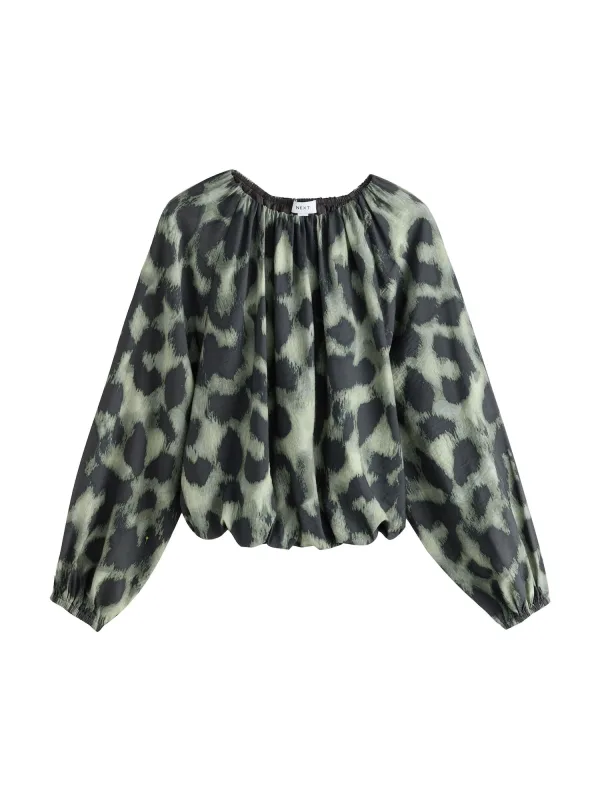 Blouse type: Blouseshirt; Design: Elastische taille/zoom, Raglanmouwen; Materiaal: Viscose; Motief: Dierenprint; Kraag: Zonder kraag; Details: Gedrapeerd; Extra's: All-over patroon; Pasvorm: Losse pasvorm; Armlengte: Lange mouw; Lengte: Normale lengte
