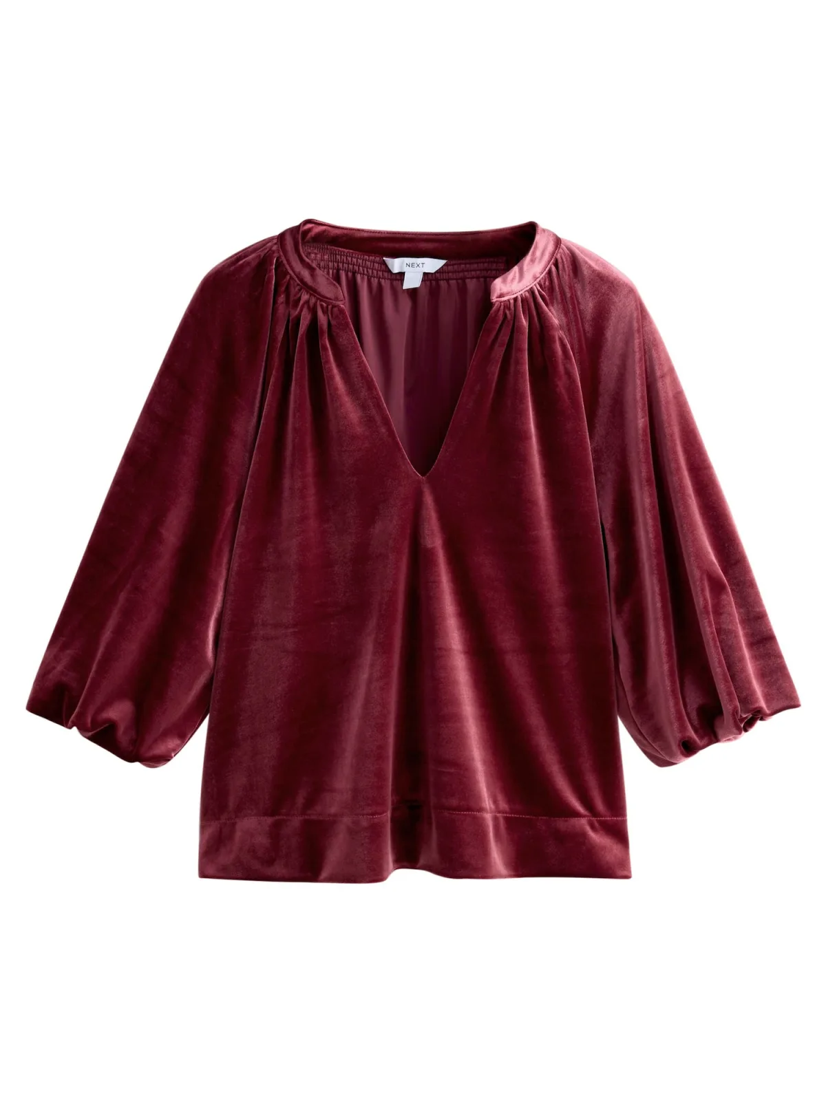 Blouse type: Wijde blouse; Design: Gevoerde zoom/rand; Materiaal: Fluweel/Nicky Velours; Motief: Effen; Kraag: Tuniek kraag; Details: Gedrapeerd; Extra's: Label patch/label flag, Op staal naden; Pasvorm: Normale pasvorm; Armlengte: Driekwart mouw; Lengte: Normale lengte