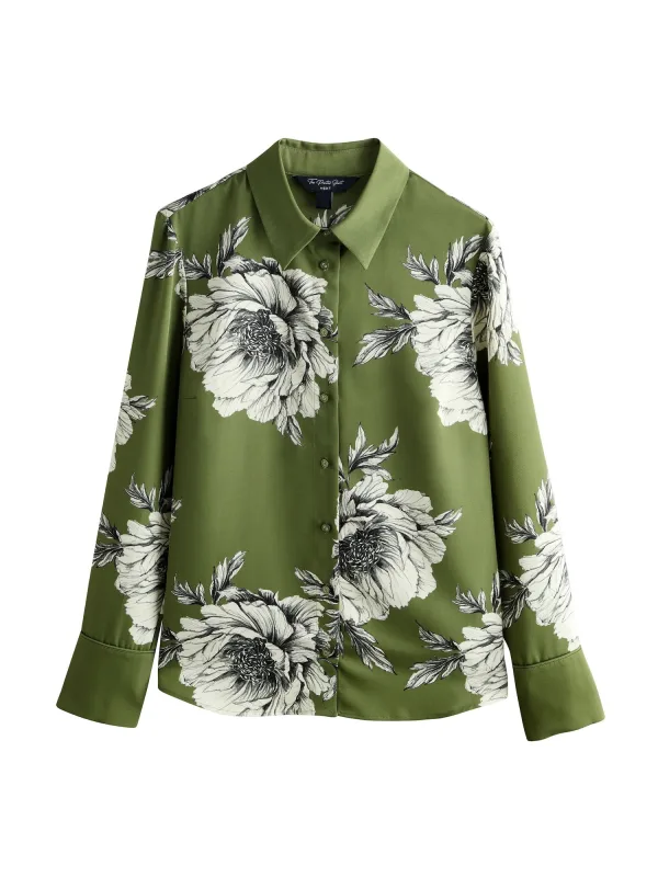 Blouse type: Klassieke blouse; Design: Knop placket, Rugplooi, Knop sluiting; Type sluiting: Knoopsluiting; Materiaal: Gerecycled materiaal; Motief: Bloemenprint; Kraag: Kentkraag; Details: Plooien; Extra's: All-over patroon, Label patch/label flag; Pasvorm: Losse pasvorm; Armlengte: Lange mouw; Lengte: Normale lengte