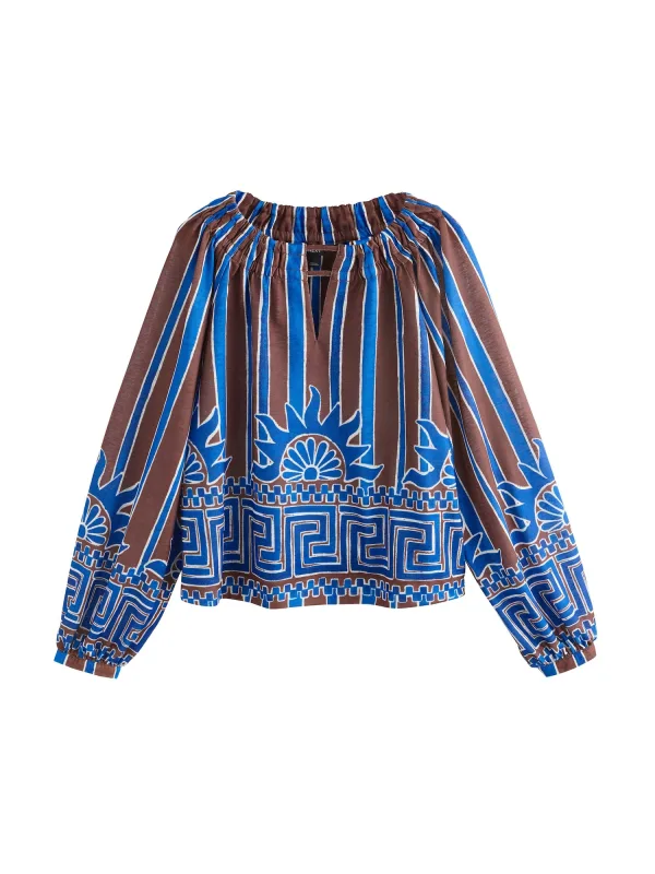 Next Blouse kobaltblauw / chocoladebruin / wit