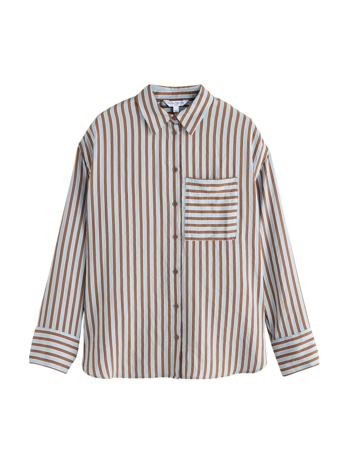Blouse type: Klassieke blouse; Design: Gevoerde zoom/rand; Type sluiting: Knoopsluiting; Materiaal: Viscose; Motief: Gestreept; Kraag: Kentkraag; Extra's: All-over patroon; Pasvorm: Losse pasvorm; Armlengte: Lange mouw; Lengte: Normale lengte