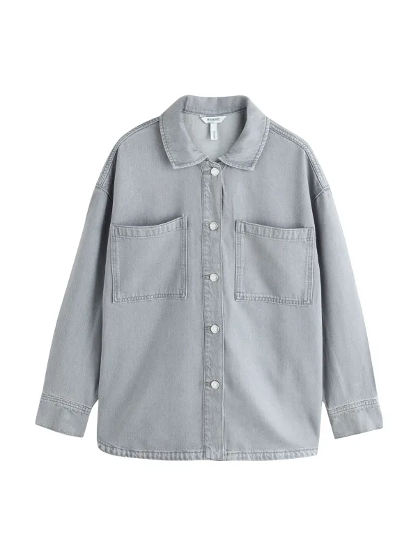 Blouse type: Klassieke blouse; Design: 1-knoops manchetten, Borstzak; Type sluiting: Knoopsluiting; Materiaal: Denim; Motief: Effen; Kraag: Kentkraag; Extra's: Op staal naden, Vaste grip; Pasvorm: Wijde pasvorm; Armlengte: Lange mouw; Lengte: Normale lengte