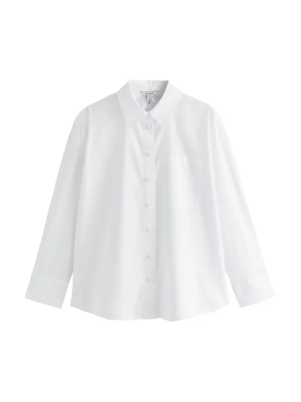 Blouse type: Klassieke blouse; Design: 2-knoops manchetten, Gevoerde zoom/rand, Knop placket, Rugplooi, Ronde zoom, Borstzak; Type sluiting: Knoopsluiting; Materiaal: Katoen; Motief: Effen; Kraag: Kentkraag; Details: Borduursels, Plooien; Extra's: Op staal naden, Voelt zacht aan; Pasvorm: Losse pasvorm; Armlengte: Lange mouw; Lengte: Normale lengte