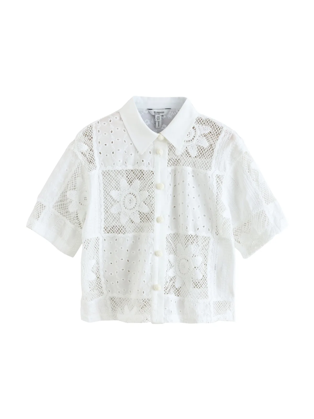 Next N. Premium overhemd met korte mouwen en gehaakt patchwork