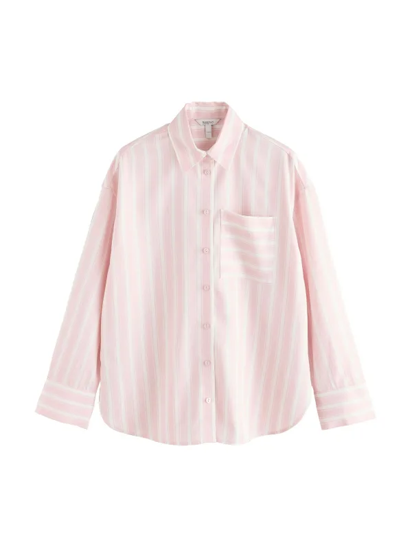 Blouse type: Klassieke blouse; Design: Oversized, Borstzak; Type sluiting: Knoopsluiting; Materiaal: Lyocell; Motief: Gestreept; Kraag: Kentkraag; Extra's: All-over patroon; Pasvorm: Normale pasvorm; Armlengte: Lange mouw; Lengte: Normale lengte