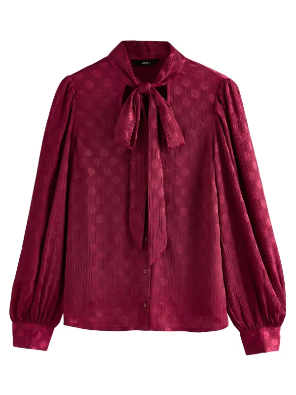 Blouse type: Blouseshirt; Design: Om te knopen/binden; Materiaal: Gerecycled materiaal; Motief: Gestippeld; Kraag: Strik; Details: Gedrapeerd; Extra's: All-over patroon; Pasvorm: Normale pasvorm; Armlengte: Lange mouw; Lengte: Normale lengte