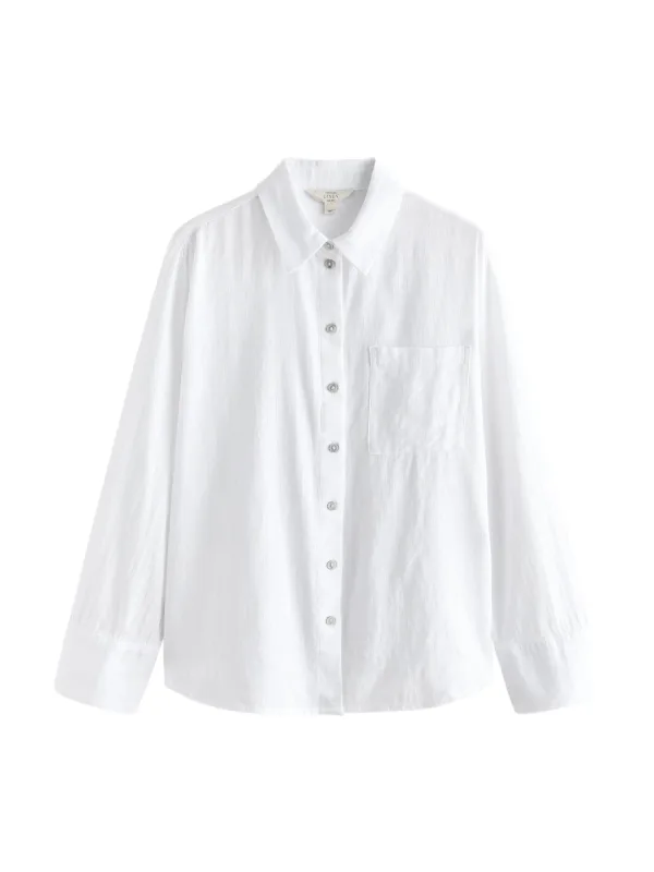 Blouse type: Klassieke blouse; Design: Gevoerde zoom/rand, Knop placket, Borstzak; Type sluiting: Knoopsluiting; Materiaal: Katoen; Motief: Effen; Kraag: Kentkraag; Details: Plooien; Extra's: Op staal naden, Met textuur, Voelt zacht aan; Pasvorm: Losse pasvorm; Armlengte: Lange mouw; Lengte: Normale lengte
