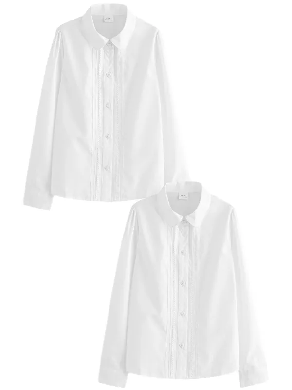 Next Verpakking van 2 schoolblouses met lange mouwen en kantafwerking
