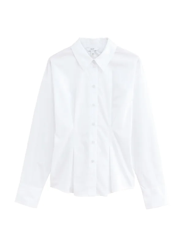 Blouse type: Klassieke blouse; Design: Gevoerde zoom/rand; Type sluiting: Knoopsluiting; Materiaal: Katoen; Motief: Effen; Kraag: Kentkraag; Details: Plooien; Extra's: Op staal naden; Pasvorm: Slanke pasvorm; Armlengte: Lange mouw; Lengte: Normale lengte