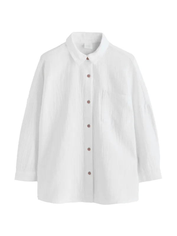 Design: Gevoerde zoom/rand; Type sluiting: Knoopsluiting; Materiaal: Katoen; Motief: Effen; Kraag: Kentkraag; Extra's: Lichte stof; Pasvorm: Normale pasvorm; Armlengte: Lange mouw; Lengte: Normale lengte