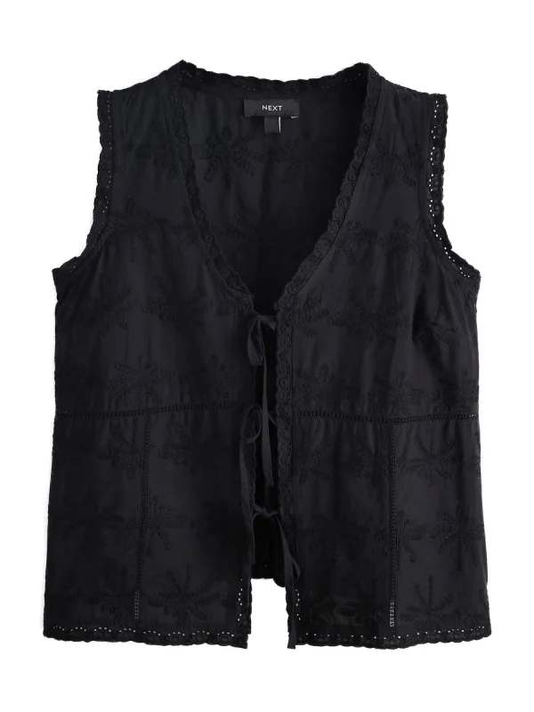 Blouse type: Blouseshirt; Design: Om te knopen/binden; Materiaal: Katoen; Halstype: V-hals; Motief: Effen; Kraag: Zonder kraag; Soort bandjes: Normale bandjes; Details: Borduursels; Extra's: Voelt zacht aan; Pasvorm: Normale pasvorm; Armlengte: Mouwloos; Lengte: Korte pasvorm