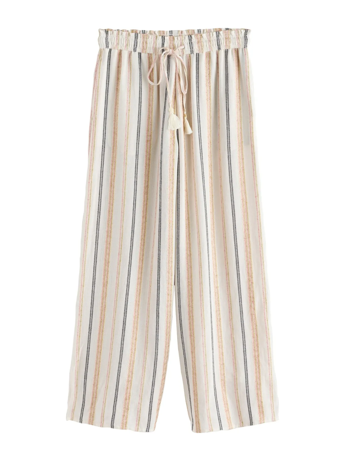 Design: Elastische taille/zoom; Materiaal: Katoen; Motief: Gestreept; Details: Gedrapeerd; Extra’s: All-over patroon; Lengte: Lang/maxi; Pasvorm: Wide leg; Taillehoogte: High waist