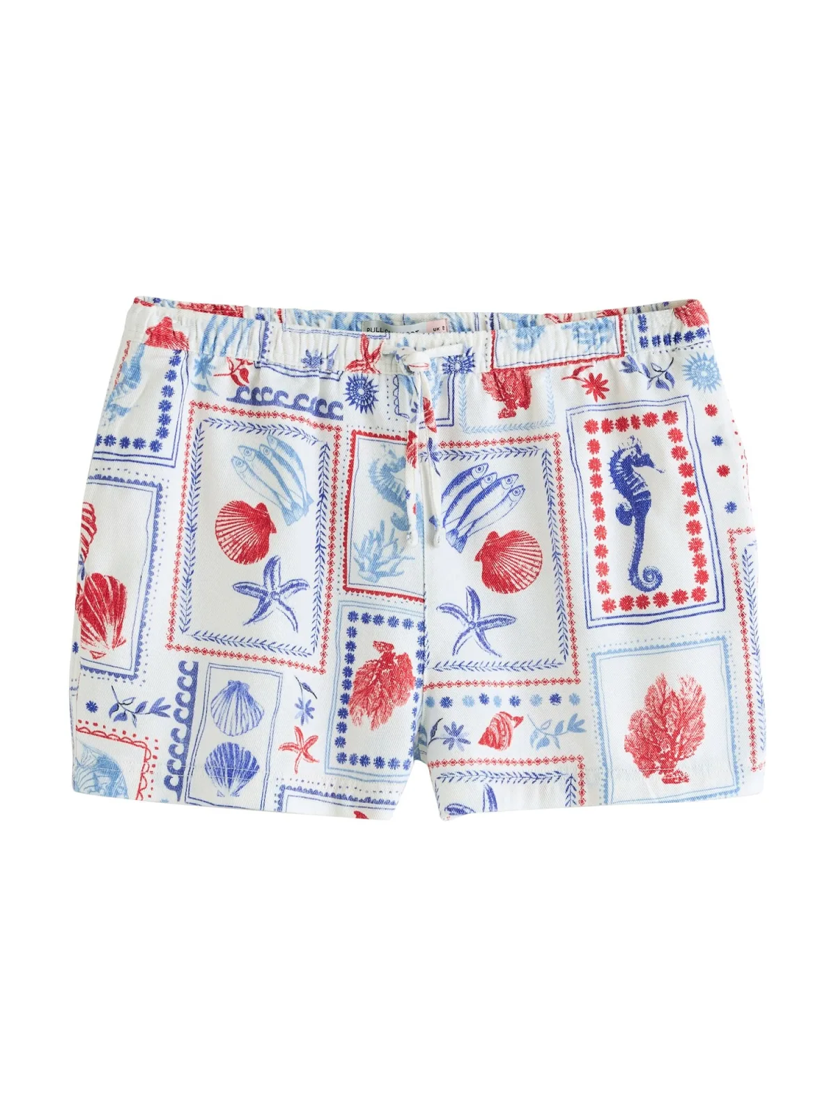 Design: Taille met trekkoord; Materiaal: Katoen; Details: Gedrapeerd; Extra's: All-over patroon; Lengte: Kort/mini; Pasvorm: Loosefit; Taillehoogte: Mid waist