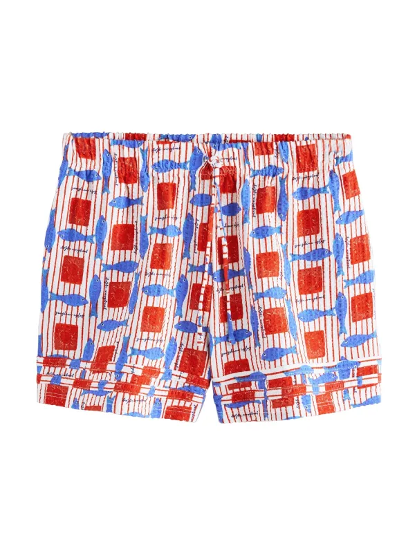 Design: Gevoerde zoom/rand, Taille met trekkoord; Materiaal: Katoen; Details: Gedrapeerd; Extra’s: All-over patroon; Lengte: Kort/mini; Pasvorm: Regular; Taillehoogte: Mid waist
