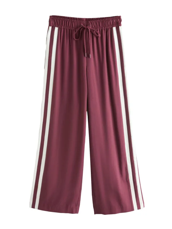 Design: Taille met trekkoord, Zijdelingse strepen, Zakken aan de zijkant; Type sluiting: Elastische band; Materiaal: Viscose; Details: Gedrapeerd, Zijstrepen; Extra's: Op staal naden, Voelt zacht aan; Lengte: Lang/maxi; Pasvorm: Wide leg; Taillehoogte: Mid waist
