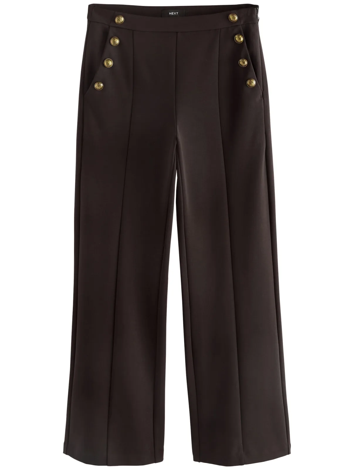 Next Ponte Broek met Wijde pijpen en goudkleurige knoopdetails