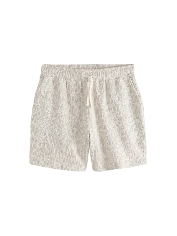 Design: Gevoerde zoom/rand, Taille met trekkoord, Zakken aan de zijkant; Materiaal: Jersey; Motief: Bloemenprint; Extra's: Met textuur, Voelt zacht aan; Lengte: Kort/mini; Pasvorm: Regular; Taillehoogte: High waist
