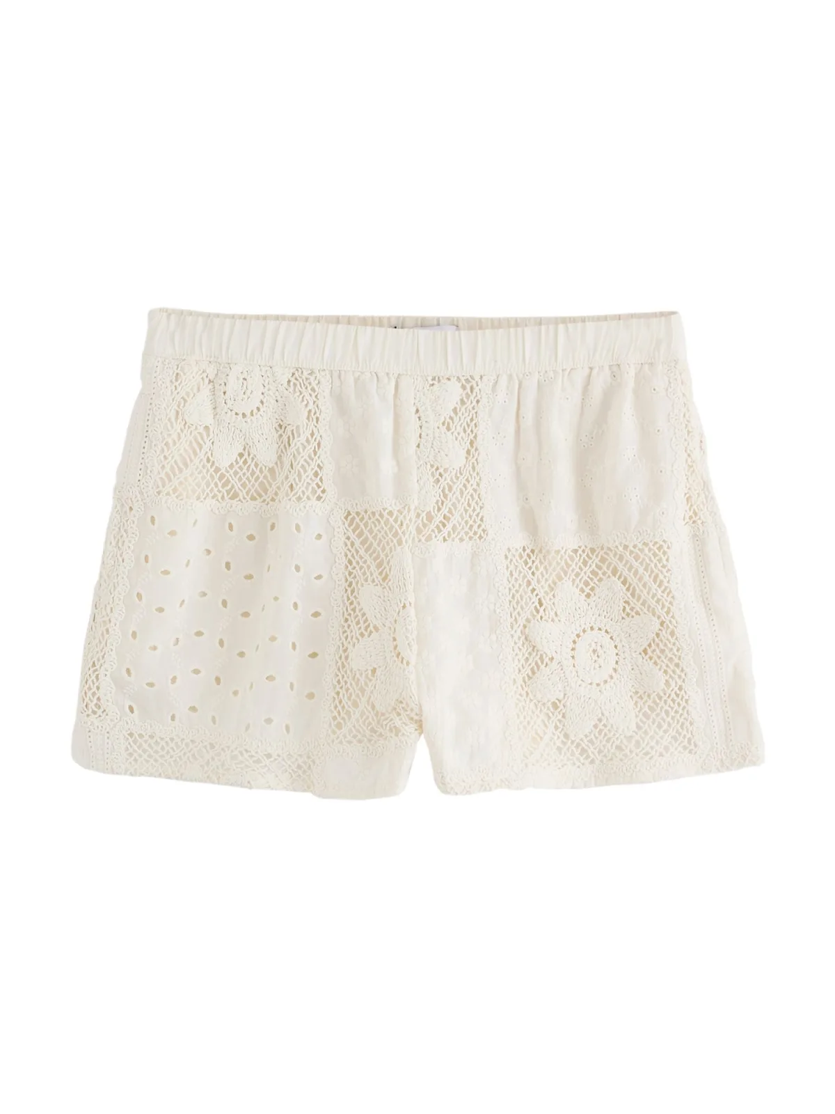 Design: Elastische taille/zoom, Zakken aan de zijkant; Materiaal: Katoen; Motief: Bloemenprint; Details: Borduursels; Extra's: Met textuur; Lengte: Kort/mini; Pasvorm: Regular; Taillehoogte: Low waist