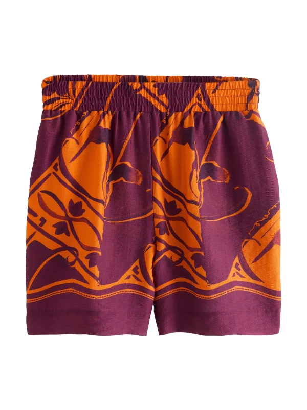 Design: Elastische taille/zoom, Zakken aan de zijkant; Type sluiting: Elastische band; Materiaal: Lyocell; Motief: Bloemenprint; Details: Gedrapeerd; Extra's: All-over patroon; Lengte: Kort/mini; Pasvorm: Regular; Taillehoogte: Mid waist