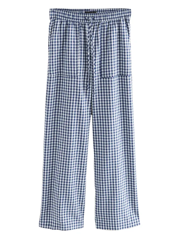 Design: Taille met trekkoord, Elastische taille/zoom; Type sluiting: Elastische band; Materiaal: Gerecycled materiaal; Motief: Geruit; Details: Gedrapeerd; Extra's: All-over patroon, Voelt zacht aan; Lengte: Lang/maxi; Pasvorm: Wide leg; Taillehoogte: Mid waist