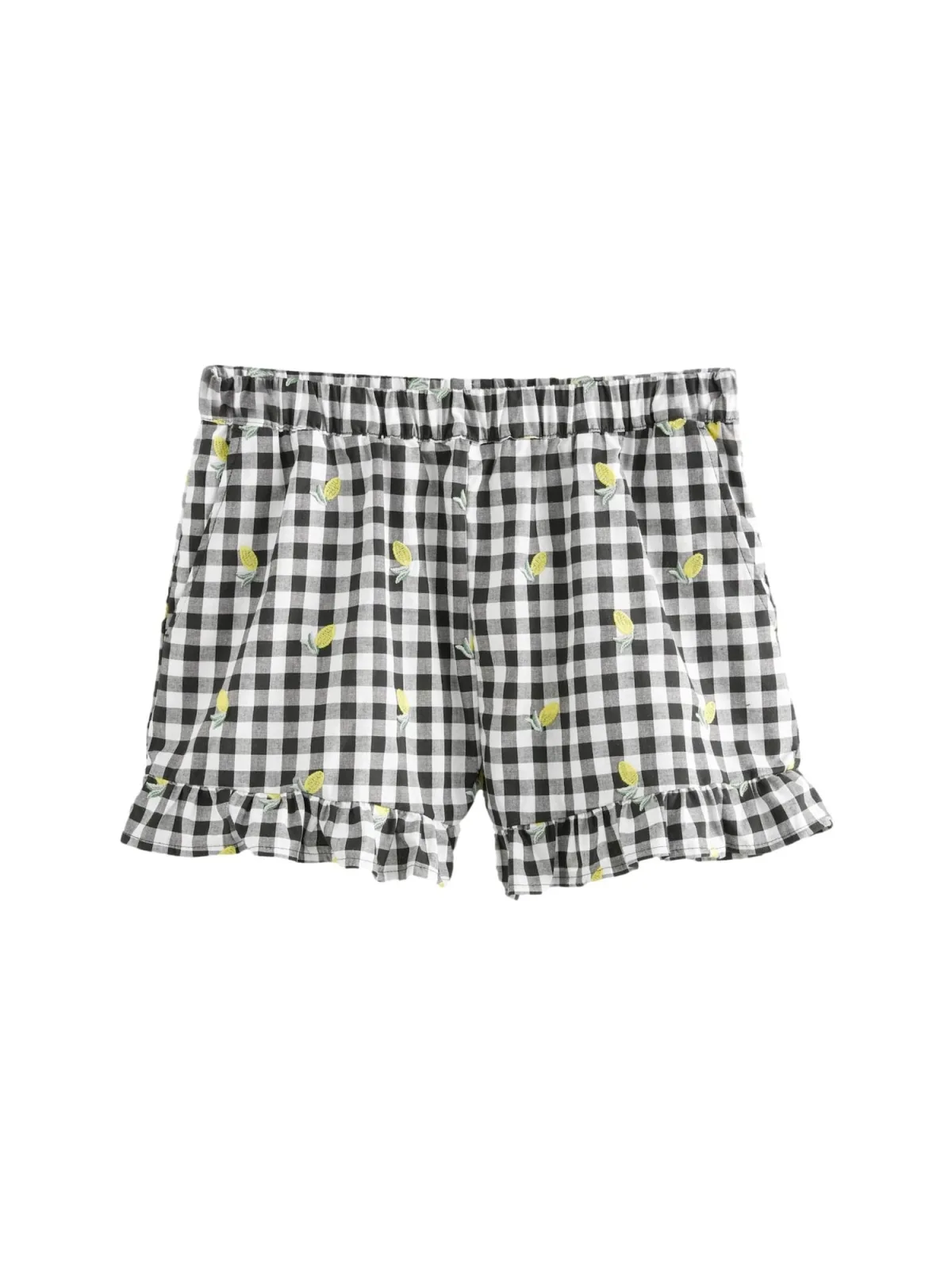 Design: Elastische taille/zoom; Materiaal: Katoen; Motief: Geruit; Details: Ruches, Borduursels, Gedrapeerd; Extra's: All-over patroon, Applicaties; Lengte: Kort/mini; Pasvorm: Regular; Taillehoogte: Mid waist