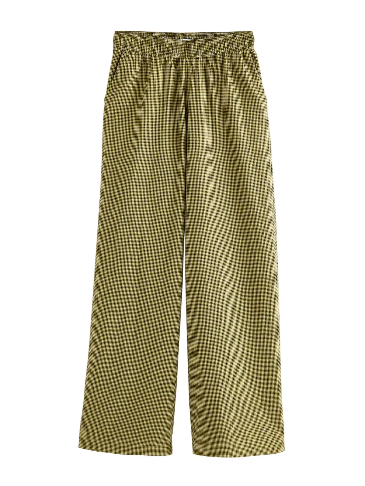 Design: Gevoerde zoom/rand, Zakken aan de zijkant; Type sluiting: Elastische band; Materiaal: Katoen; Motief: Geruit; Details: Gedrapeerd; Extra's: Op staal naden, Crinkle look; Lengte: Lang/maxi; Pasvorm: Wide leg; Taillehoogte: High waist