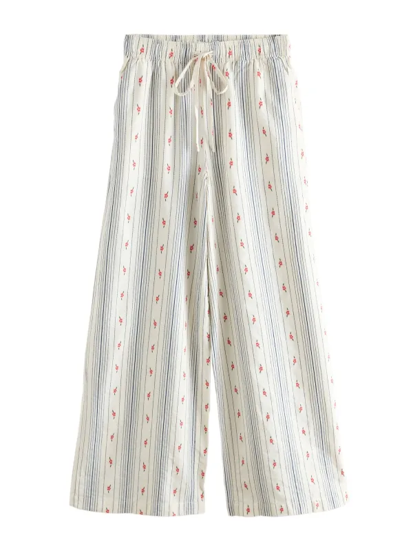 Design: Gevoerde zoom/rand, Taille met trekkoord, Om te knopen/binden, Zakken aan de zijkant; Materiaal: Katoen; Motief: Gestreept; Details: Gedrapeerd; Extra's: All-over patroon, Voelt zacht aan; Lengte: Lang/maxi; Pasvorm: Wide leg; Taillehoogte: Mid waist