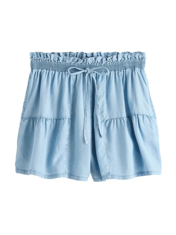 Design: Taille met trekkoord, Elastische taille/zoom; Materiaal: Lyocell; Motief: Effen; Details: Ruches, Gedrapeerd; Extra's: Op staal naden; Lengte: Kort/mini; Pasvorm: Loosefit; Taillehoogte: Mid waist