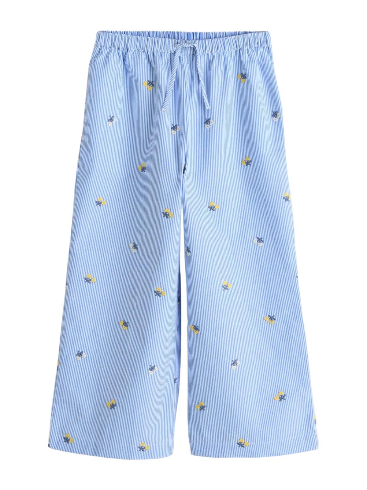 Design: Gevoerde zoom/rand, Elastische taille/zoom; Materiaal: Katoen; Motief: Gestreept; Details: Borduursels; Extra's: Voelt zacht aan, Huidvriendelijk materiaal; Lengte: Lang/maxi; Pasvorm: Wide leg
