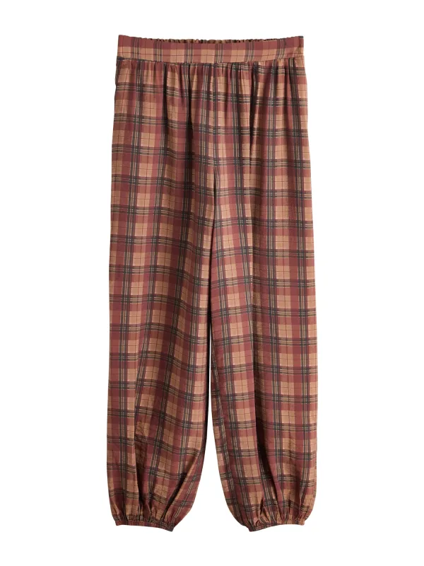 Design: Elastische taille/zoom; Materiaal: Viscose; Motief: Geruit; Details: Gedrapeerd; Extra's: All-over patroon; Lengte: Lang/maxi; Pasvorm: Vat; Taillehoogte: High waist
