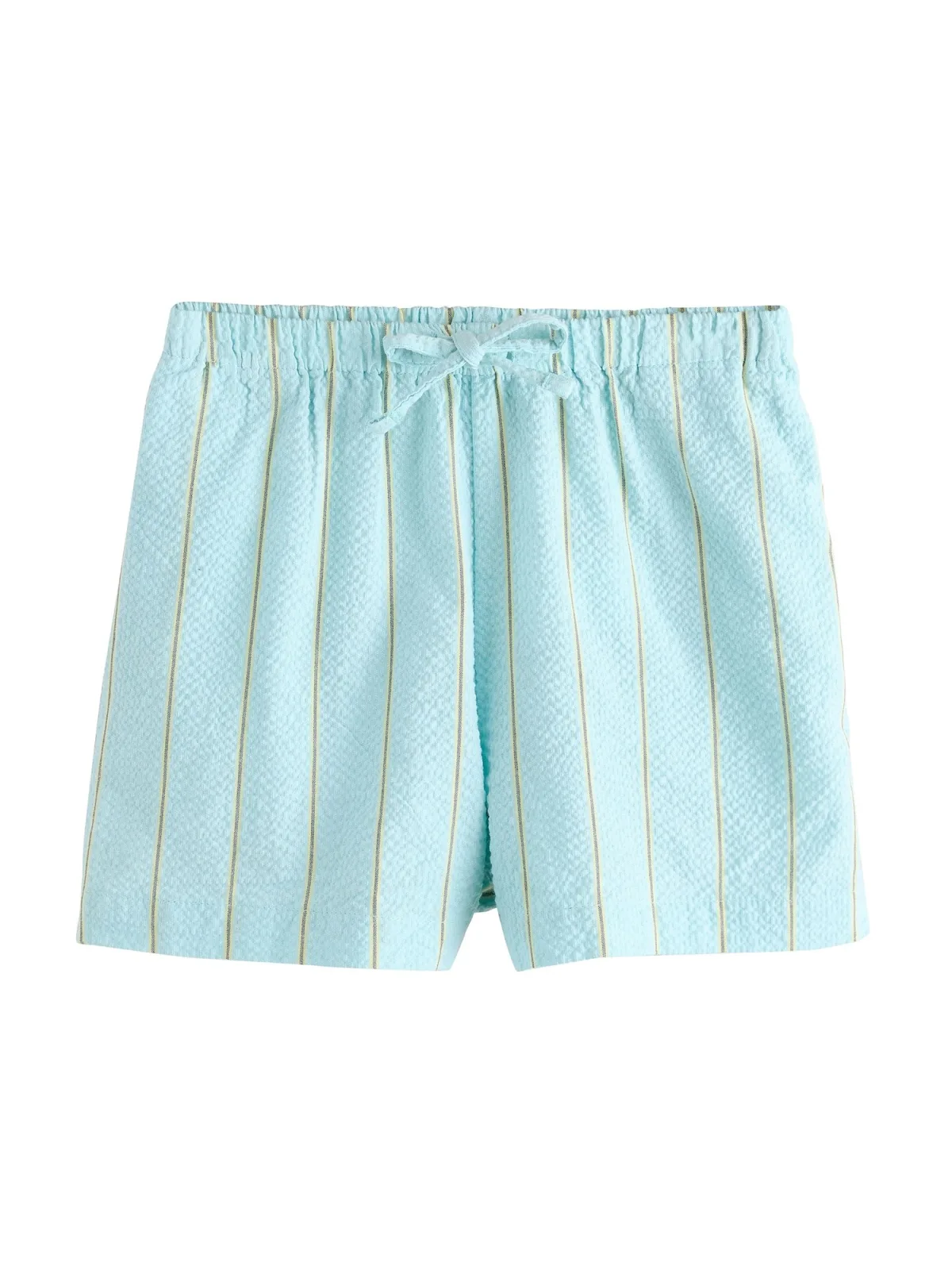 Design: Taille met trekkoord, Zakken aan de zijkant; Materiaal: Katoen; Motief: Gestreept; Extra's: All-over patroon, Wafelstructuur; Lengte: Kort/mini; Pasvorm: Regular; Taillehoogte: Mid waist