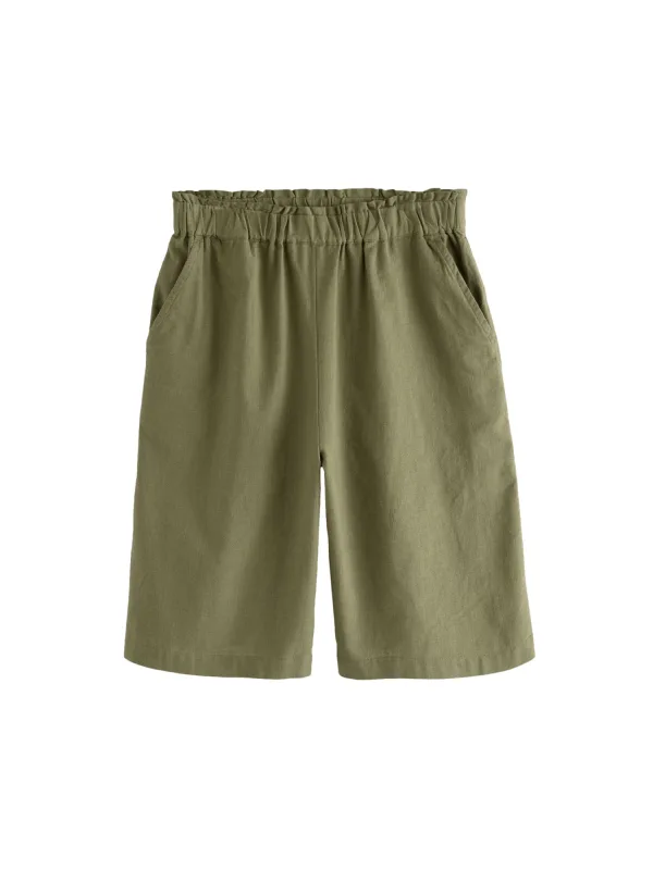 Design: Gevoerde zoom/rand, Elastische taille/zoom, Zakken aan de zijkant; Materiaal: Katoen; Motief: Effen; Details: Ruches, Gedrapeerd; Extra's: Op staal naden, Voelt zacht aan; Lengte: Knielengte; Pasvorm: Loosefit; Taillehoogte: High waist